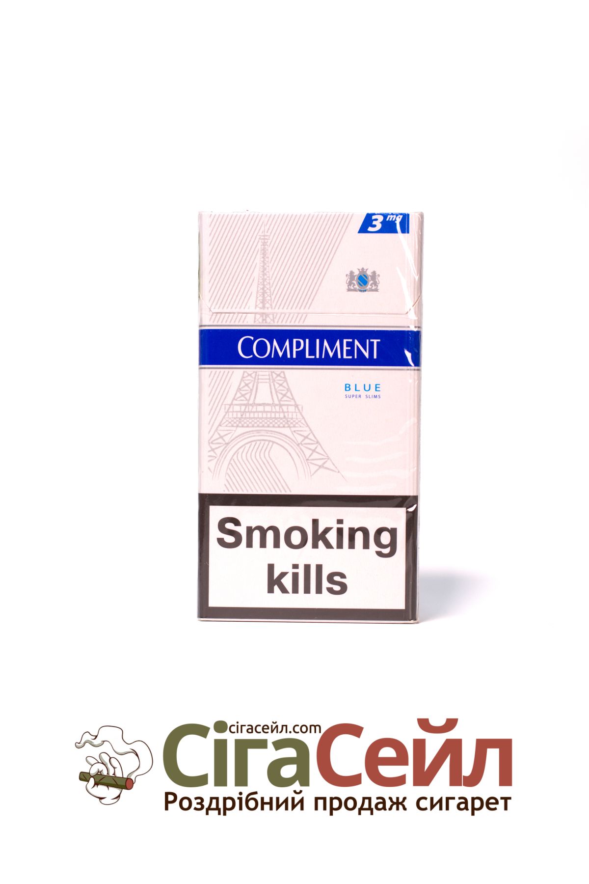 Ціни на сигарети Compliment Super Slims 3 Blue в нашому інтернет-магазині роздрібних продажів Сігасейл.net є дуже конкурентоспроможними. Ми прагнемо запропонувати нашим клієнтам найкращі ціни на ринку без шкоди для якості товару.